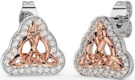 Diamond Rose Gold Silver Celtic Trinity Knot Stud Earrings