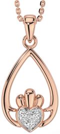 Diamond Rose Gold Silver Claddagh Necklace