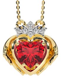 Diamond Ruby Gold Claddagh Necklace