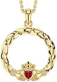 Diamond Ruby Gold Silver Celtic Claddagh Necklace