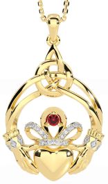 Diamond Ruby Gold Silver Celtic Claddagh Necklace