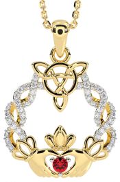 Diamond Ruby Gold Silver Celtic Claddagh Necklace
