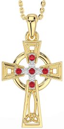 Diamond Ruby Gold Silver Celtic Cross Necklace