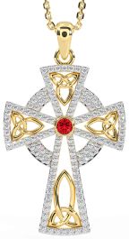 Diamond Ruby Gold Silver Celtic Cross Trinity Knot Necklace