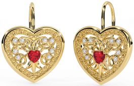Diamond Ruby Gold Silver Celtic Heart Dangle Earrings