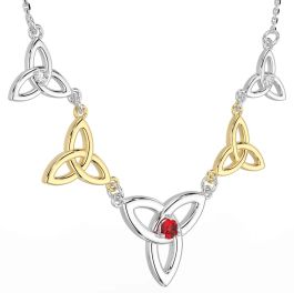 Diamond Ruby Gold Silver Celtic Trinity Knot Necklace