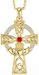Diamond Ruby Gold Silver Claddagh Celtic Cross Necklace