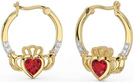 Diamond Ruby Gold Silver Claddagh Hoop Earrings