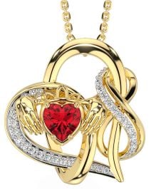 Diamond Ruby Gold Silver Claddagh Infinity Necklace