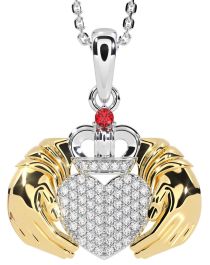 This Claddagh Necklace comes in Gold and Silver set with a choice of Diamonds and Gemstones. The current selection is made from . Set with a and accent . . . .