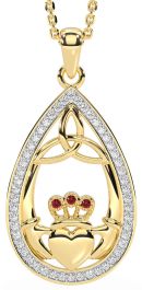 Diamond Ruby Gold Silver Claddagh Trinity Knot Necklace