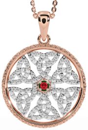 Diamond Ruby Rose Gold Celtic Trinity Knot Necklace