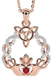 Diamond Ruby Rose Gold Silver Celtic Claddagh Necklace