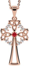 Diamond Ruby Rose Gold Silver Celtic Cross Trinity Knot Necklace