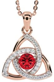 Diamond Ruby Rose Gold Silver Celtic Trinity Knot Necklace