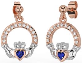 Diamond Ruby Rose Gold Silver Claddagh Dangle Earrings