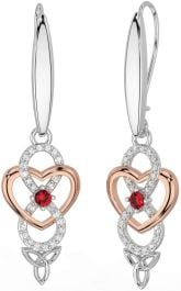 Diamond Ruby Rose Gold Silver Infinity Celtic Trinity Knot Dangle Earrings