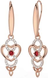 Diamond Ruby Rose Gold Silver Infinity Celtic Trinity Knot Dangle Earrings