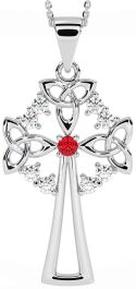 Diamond Ruby Silver Celtic Cross Trinity Knot Necklace