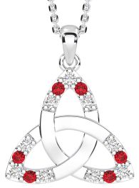 Diamond Ruby Silver Celtic Trinity Knot Necklace