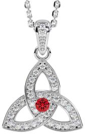 Diamond Ruby Silver Celtic Trinity Knot Necklace