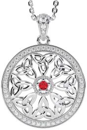 Diamond Ruby Silver Celtic Trinity Knot Necklace