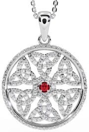 Diamond Ruby Silver Celtic Trinity Knot Necklace