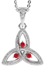 Diamond Ruby Silver Celtic Trinity Knot Necklace