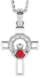 Diamond Ruby Silver Claddagh Celtic Cross Necklace