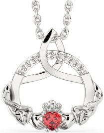 Diamond Ruby Silver Claddagh Celtic Trinity Knot Necklace