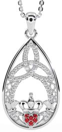 Diamond Ruby Silver Claddagh Celtic Trinity Knot Necklace
