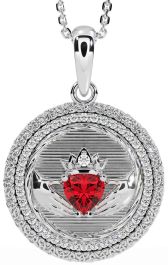 Diamond Ruby Silver Claddagh Celtic Trinity Knot Necklace