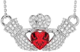 Diamond Ruby Silver Claddagh Necklace