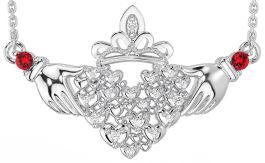 Diamond Ruby Silver Claddagh Necklace