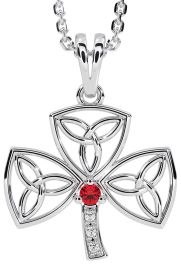 Diamond Ruby Silver Shamrock Trinity Knot Necklace