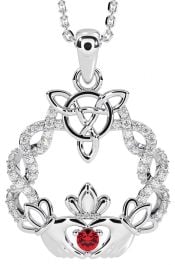 Diamond Ruby White Gold Celtic Claddagh Necklace