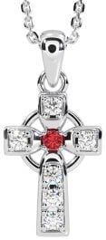 Diamond Ruby White Gold Celtic Cross Necklace