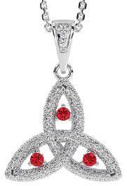 Diamond Ruby White Gold Celtic Trinity Knot Necklace