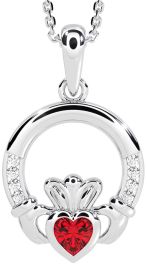 Diamond Ruby White Gold Claddagh Necklace