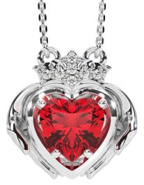 Diamond Ruby White Gold Claddagh Necklace