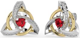 Diamond Ruby White Yellow Gold Celtic Trinity Knot Stud Earrings