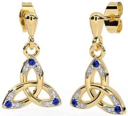 Diamond Sapphire Gold Celtic Trinity Knot Dangle Earrings