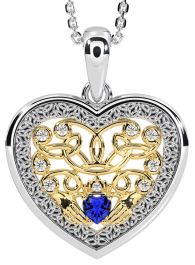Diamond Sapphire Gold Silver Celtic Claddagh Trinity Knot Heart Necklace