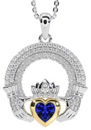 Diamond Sapphire Gold Silver Claddagh Celtic Trinity Knot Necklace