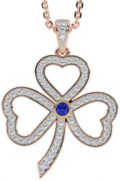 Diamond Sapphire Rose Gold Shamrock Necklace
