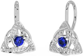 Diamond Sapphire Silver Celtic Trinity Knot Stud Earrings