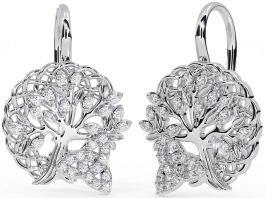 Diamond Silver Celtic Tree of Life Trinity Knot Dangle Earrings