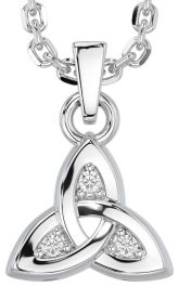 Diamond Silver Celtic Trinity Knot Charm Necklace