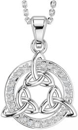 Diamond Silver Celtic Trinity Knot Necklace