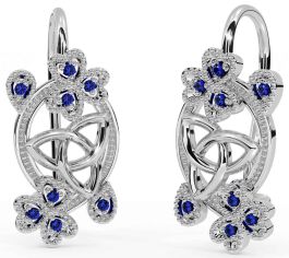 Diamond Silver Celtic Trinity Knot Shamrock Dangle Earrings